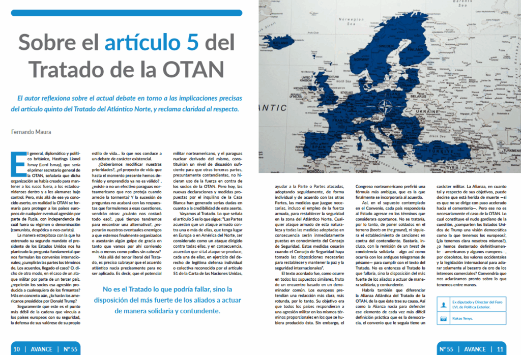 Más allá del tenor literal del Tratado, es preciso subrayar que el acuerdo atlántico nacía precisamente para no ser aplicado. Es decir, que el potencial militar norteamericano, y el paraguas nuclear derivado del mismo, constituirían un nivel de disuasión suficiente para que otras terceras partes, presuntamente contendientes, no hicieran uso de la fuerza en contra de los socios de la OTAN. Pero hoy, las nuevas declaraciones y medidas propuestas por el inquilino de la Casa Blanca han generado serias dudas en cuanto a la credibilidad de este aserto.