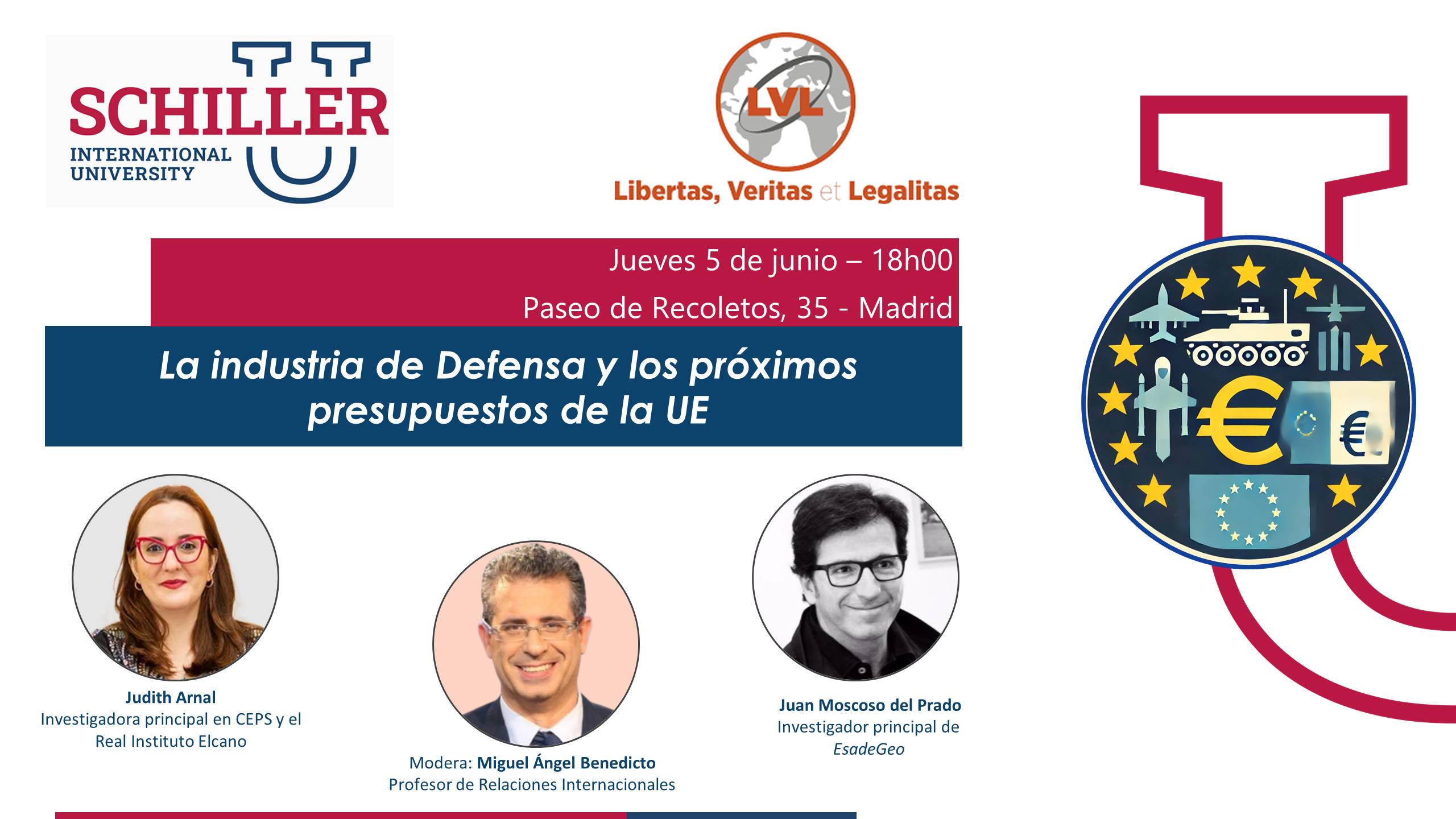 Schiller International University Paseo de Recoletos, 35, MadridEl Foro LVL, en colaboración con la Schiller International University, organiza una mesa redonda para analizar el papel de la industria de defensa en Europa y su impacto en los próximos presupuestos de la Unión Europea. Temas a tratar: El futuro de la inversión europea en defensa Retos estratégicos para la industria militar en la...